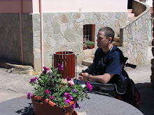 Rubén Mielgo, pintor, muralista genial y buena gente. Se ha venido por la gorra a pintar el mural del comedor de San Cayetano. Cuando este terminado, lo pondremos de portada del blog.